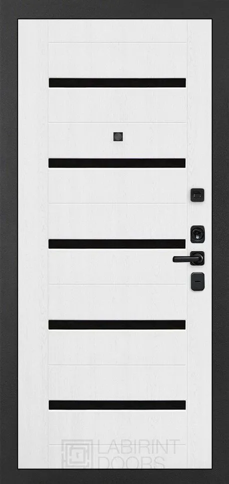 Фурнитура в черном цвете: Броненакладка врезная, накладка со шторкой, глазок , дверная ручка, ночная задвижка. Цилиндр ключ-вертушка Apecs, регулируемый эксцентрик.